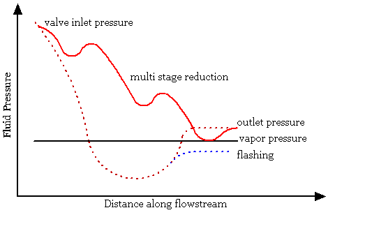 如上图所示的“缩”是一个单级阀远低于多级阀。 取决于压力降和流体的可能的温度在阀使用一个以上的阶段,以避免气蚀的条件。