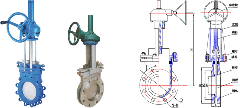 伞齿轮刀型闸阀,又称刀闸阀或刀型浆闸阀。其应用范围非常广泛,从矿山、电厂的选煤、排矸、排渣,到城市的污水处理;从水泥、造纸厂的浆液输送,到食品、卫生、医药等专业管道。超薄设计的伞齿轮刀型闸阀以其体积小、重量轻、阻流小、不积渣,易安装,易拆卸的优点彻底解决了普通闸阀、平板闸阀、球阀、截止阀、调节阀、蝶阀等阀门的阻流大,占空间,易积渣,不易安装和维修等疑难问题。因而大量的通用切断类阀和调节型阀门被伞齿轮刀型闸阀取代。